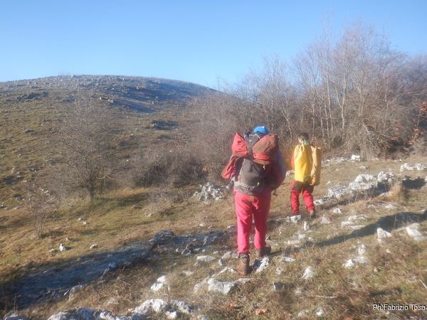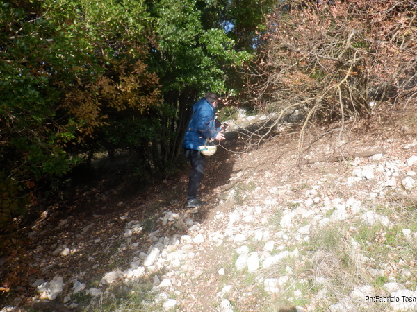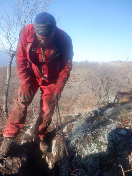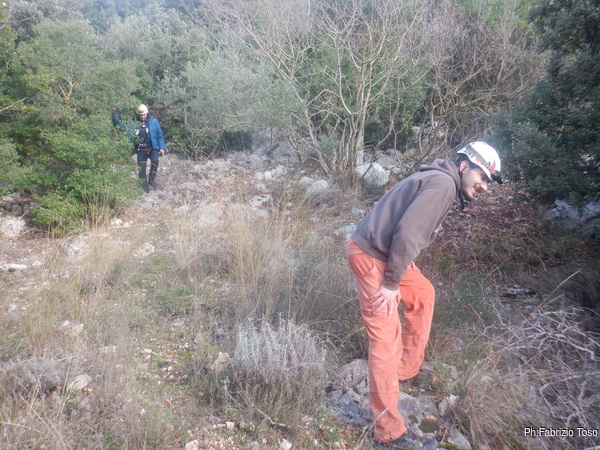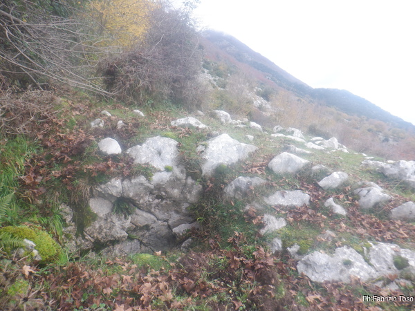 Dopo questa prima sconfitta ci spostiamo a piedi verso le altre 2 grotte che cerchiamo: CATRAVASSO A CESA DI BOVETTO(LA1073) e POZZO DELLE RAGNATELE(LA1072). In catasto risultano molto vicine tra loro.