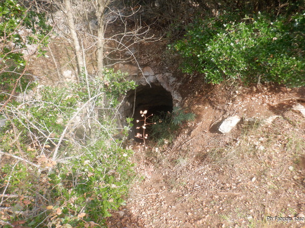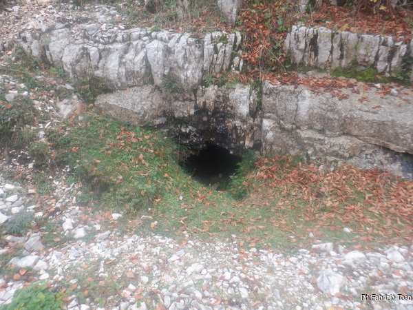 La prima cosa che si nota e’ un bel muretto a secco fatto con i sassi tolti dal fondo della grotta.