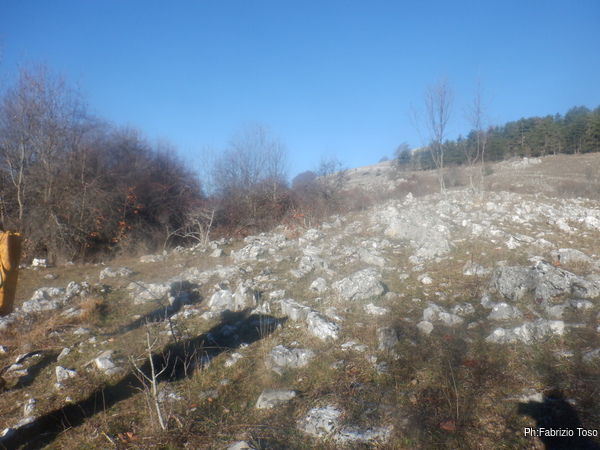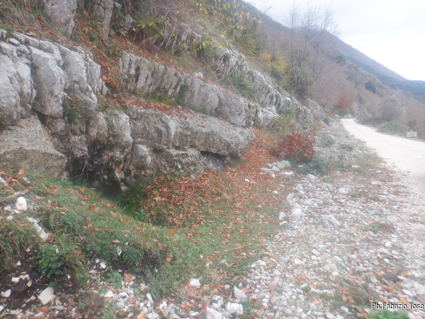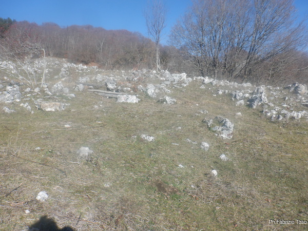Purtroppo “l’Alberta” dice anche che la grotta non e’ stata piu’ ritrovata dopo i lavori di ampliamento della strada. Io, non convinto “seguo” il mio GPS che punta alle coordinate in catasto. Mi fermo al limitare di un terreno recintato, sembra puntino proprio al recinto. Guardo un poco attorno poi torno alla strada.
