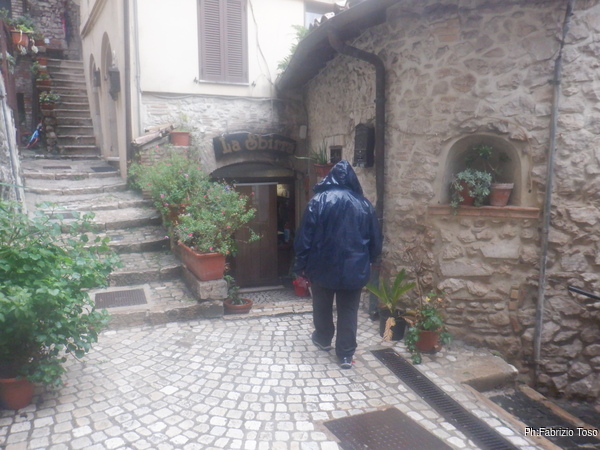 La pioggia continua a volerci impedire una bella passeggiata a tratti sembra diminuire ma basta uscire dalla macchina che lei riprende con rinnovata energia. Oramai siamo rassegnati e anzi iniziamo a pensare di andare a pranzo dai nostri amici Floriana e Luca, alla Sbirra.