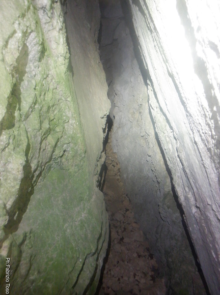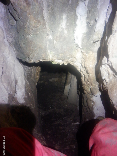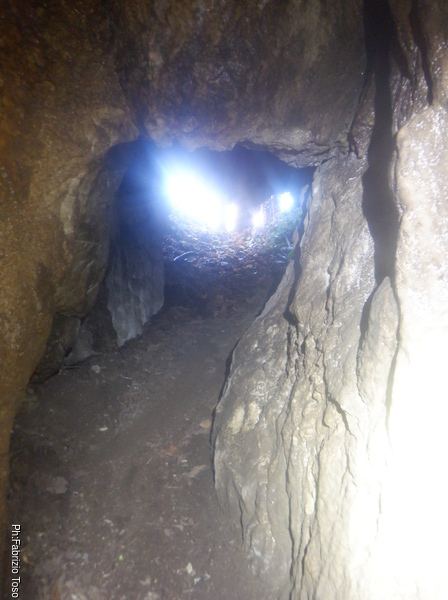Mi volto indietro a fotografare anche il pertugio dall’interno. Vedo delle ombre affacciarsi all’ingresso, Sono Irene, Claudio e Luca che si apprestano a entrare.