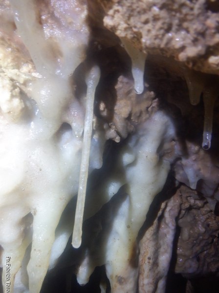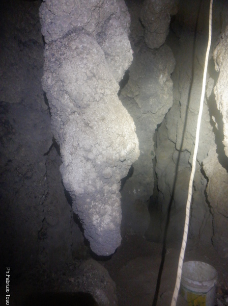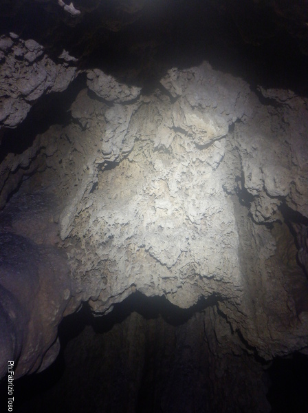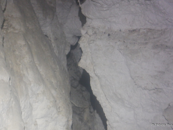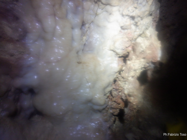 La grotta sembra formata in rocce pronte a franare, anche delle spaccature tra le concrezioni “fresche” testimoniano degli assestamenti.