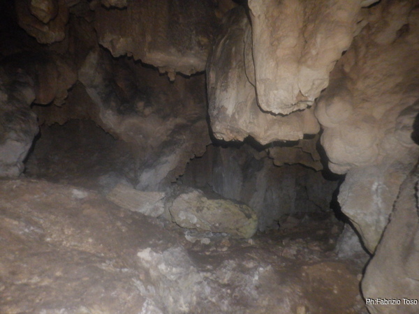 Passato il pertugio, piu’ scomodo a vedersi che a farsi, mi ritrovo finalmente nella sala principale della grotta. Senza muovermi piu’ di tanto faccio qualche foto partendo dai cunicoli che partono alla mia sinistra. Non ho voglia di infangarmi troppo quindi anche stavolta rimando la visita dei cunicoli a una prossima occasione.