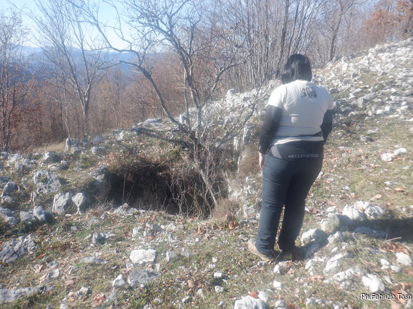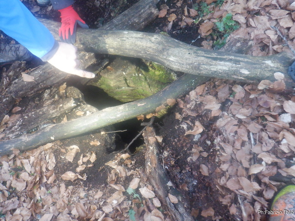 Il gruppo di nuovi esploratori inizia l’avventura in grotta mentre Betta, io e Luna prendiamo il sentiero per tornare alla macchina. Strada facendo vedo un buco che non sembra male affatto, chissa’ se e’ gia’ stato visto. Gli faccio una foto per chiedere a Nerone.