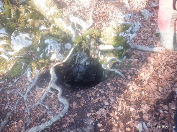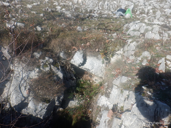 Strada facendo pero’, sia all’andata che al ritorno troviamo alcuni buchi interessanti che ora vi mostro. Questo e’ il primo, addirittura ha un fix messo nelle vicinanze…sara’ catastabile?