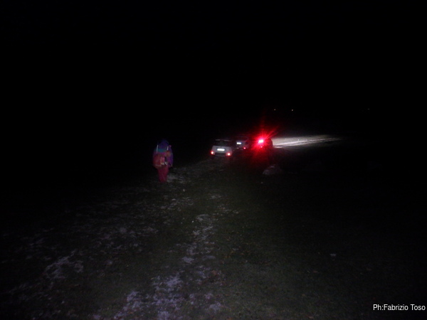 Mentre il tramonto inizia a farsi sempre piu’ scuro, partiamo zaino in spalla alla volta delle macchine.