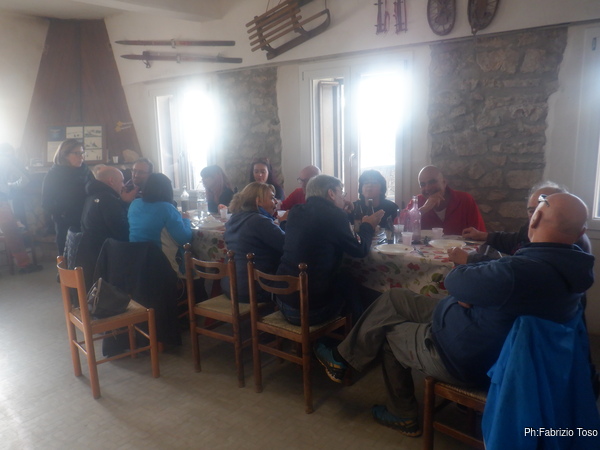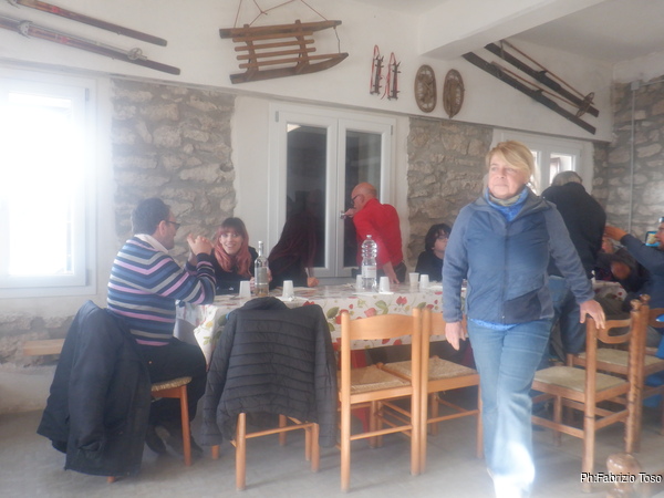 Tra una sosta e l’altra si e’ fatta ora di pranzo quindi senza fretta ma con un robusto appetito ci avviamo al parcheggio di Carpineto e quindi fin su al centro del paese dove umidi di pioggia ma contenti troviamo la Sbirra dove Floriana e Luca sapranno come farci contenti con le loro prelibatezze.