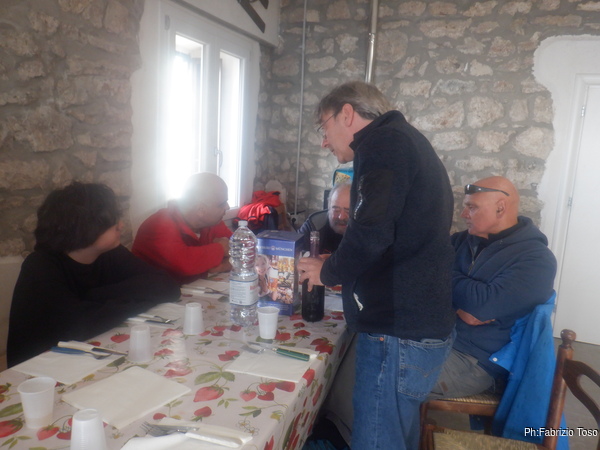 Eccoci tutti al classico tavolino da sagra oramai sazi e soddisfatti. Gabriele e’ gia’ al telefono perche’ nel pomeriggio ci saranno altre persone da accompagnare in grotta. Nerone ed io non potremo esserci, per fortuna Irene, Martina e Luca daranno manforte a Gabriele.