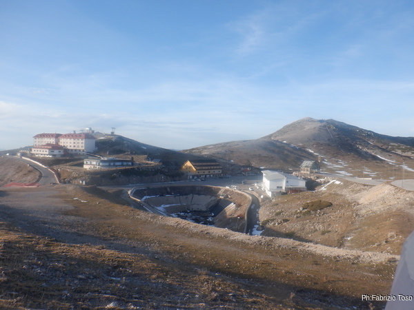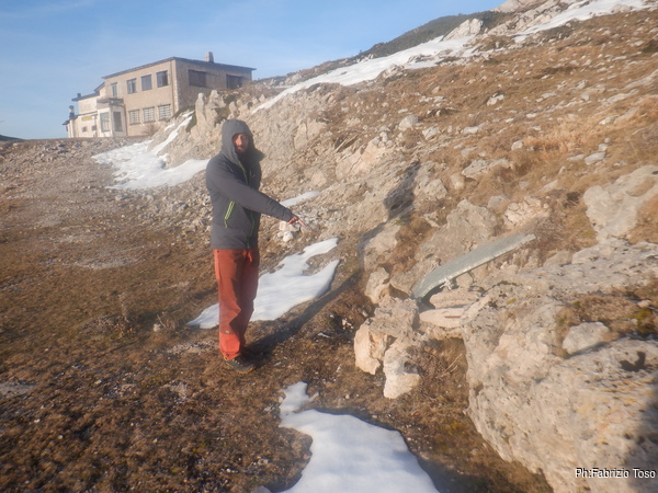 Fatta la ricognizione del posto mi sistemo e inizio a scavare col trapano demolitore. Lo faccio per pochi minuti perche’ all’improvviso il trapano smette di funzionare. Chiamo Luca per sapere la risposta e’ che fuori fa freddo ed e’ ora di tornare alle auto, quindi il generatore e’ stato spento.