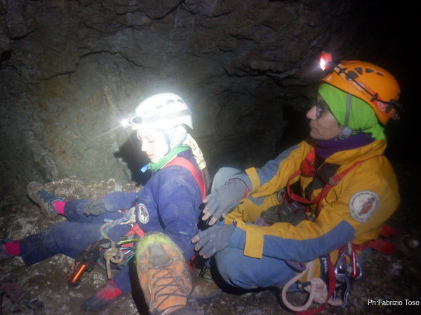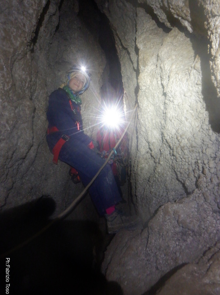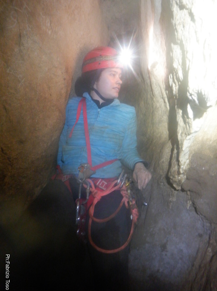 Inizia a scendere AnnaPaola. Si ferma al frazionamento per dare uno sguardo a Diana.