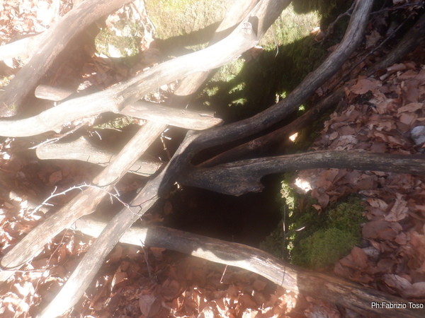 Eccola qua, libera dai tronchi che la difendevano. L’ingresso non e’ esaltante ma dal rilievo sembra essere una grotta interessante, che puo’ nascondere sorprese..