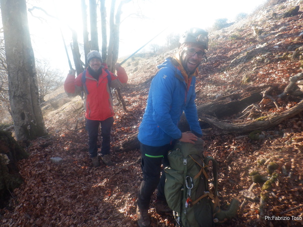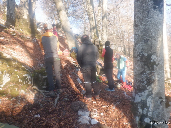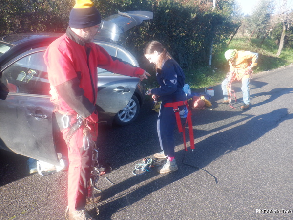 La mattina, con tutta la calma possibile, Martina, io e Gabriele arriviamo all’appuntamento dove Luca e Nerone ci attendono. Al calore del tiepido sole che ci sta regalando questa giornata ci cambiamo velocemente e prepariamo gli zaini col materiale.