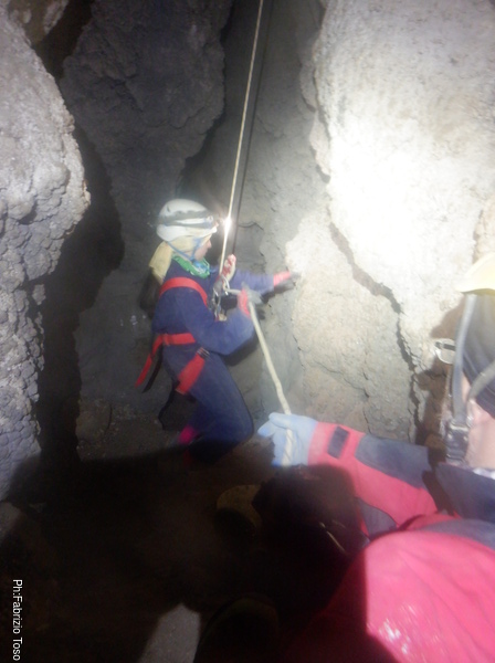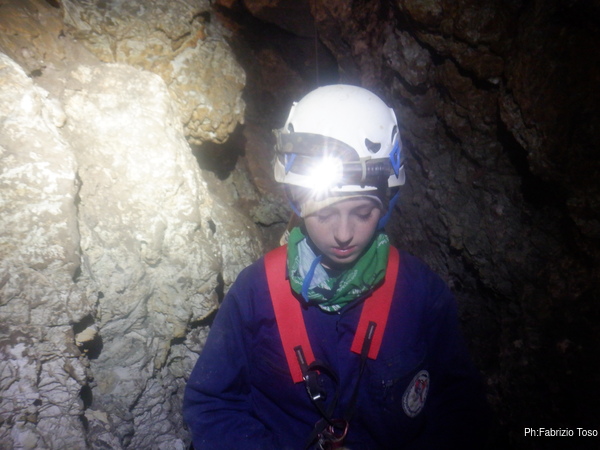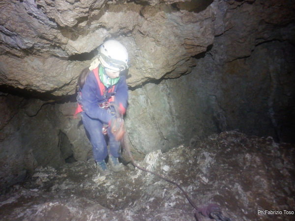 Mentre Martina scendeva il pozzo d’ingresso e’ arrivato anche Gabriele, in pochi minuti anche lui e’ tra noi.