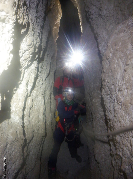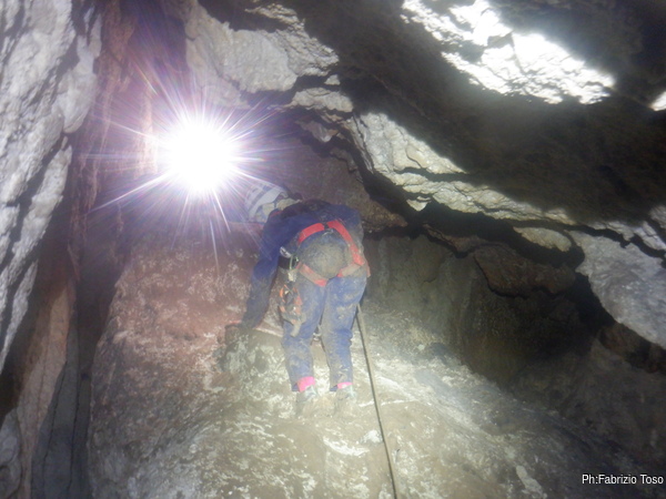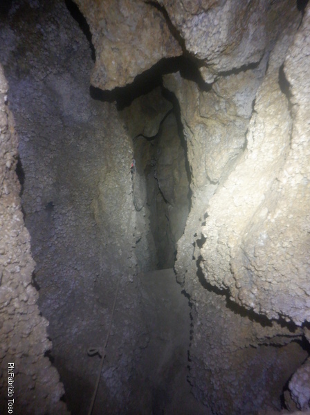 Dopo la discesa riprendiamo per il bypass comodo e proseguiamo facendo il meandro in senso contrario fino al pozzo.