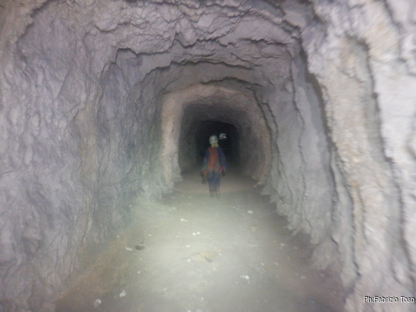 Dopo un centinaio di metri di galleria arriviamo all’ingresso della grotta. Hanno lavorato parecchio anche dal lato opposto dell’ingresso, probabilmente avranno trovato un bypass che porta velocemente in zona esplorazione evitando la camminata nel meandro che noi percorreremo oggi.