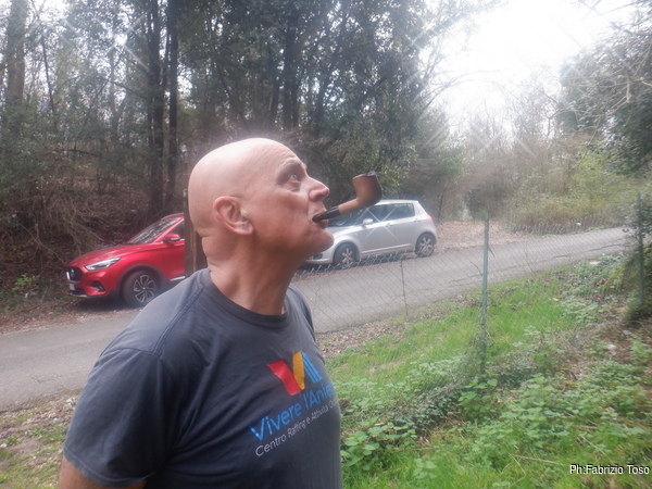 Prima di tornare all’auto per proseguire la giornata Irene da’ sfogo al suo estro artistico disegnando il simbolo del nostro gruppo sulla parete d’ingresso.