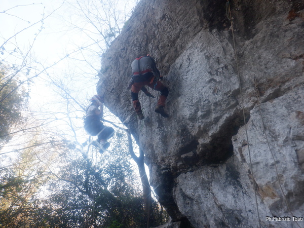 Ecco Luca che scende dalle nuove vie armate mentre Alfonso si esercita.