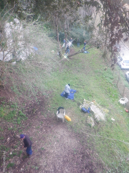 Quando esco, Marco entra. Trova l’ingresso ancora un poco angusto quindi, dopo aver visto il lavoro fatto sinora decide che dobbiamo lavorare di nuovo per rendere comodo l’ingresso. Le Laure seguono il lavoro godendosi il sole.