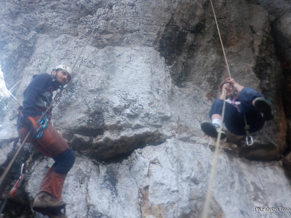 Silvia e Niccolo’ hanno ancora energie da vendere quindi, mentre con Luca provvediamo al disarmo delle vie, loro si divertono con alcune corde fisse.
