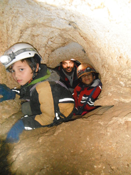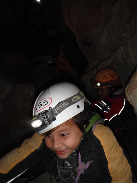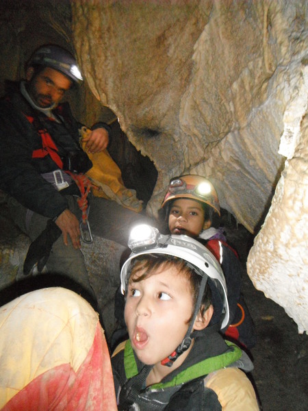 Che dire? E’ stata una gioia accompagnare mio fratello Giorgio ed i suoi figli (e quindi miei nipotini adorati!) Blu (di 8 anni e quasi 25 chili!) ed Elio (di 6 anni e l’impressionante peso di quasi 20 chili!!) nella loro prima uscita in grotta. Per questa volta ci siamo accontentati di scendere il primo pozzetto,