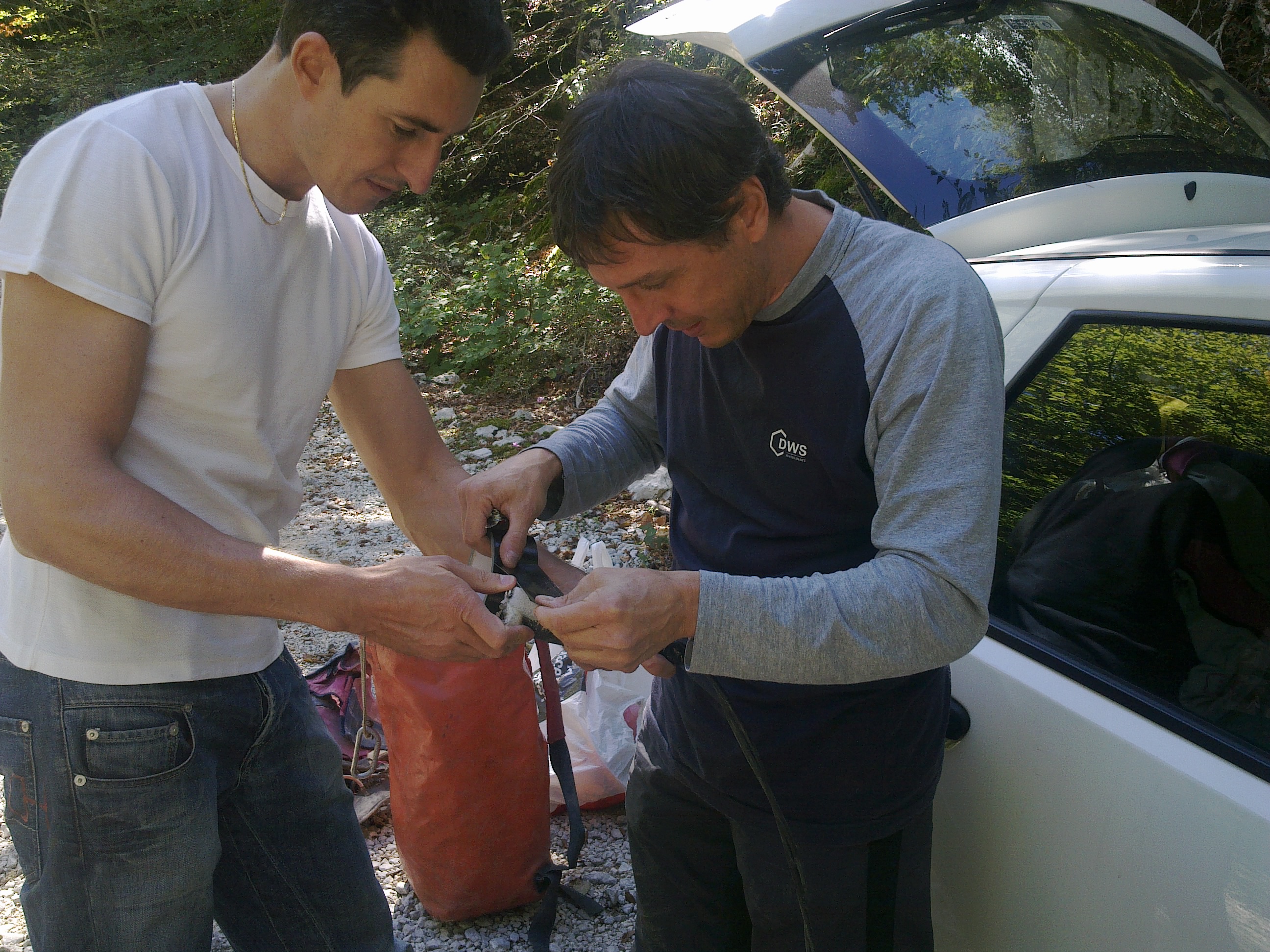 Per sommi capi, l’uscita si proponeva di utilizzare una telecamera per “vedere” come prosegue una grotta che stavamo allargando l’estate scorsa. Simona ed Augusto avevano provveduto ad attrezzare la telecamera unendola ad un laser che proietta un reticolo di punti. Nelle intenzioni dei nostri amici l’associazione del reticolo di punti con la telecamera doveva permettere la valutazione delle dimensioni di cio’ che la telecamera avrebbe rivelato. L’idea in se’ era geniale, la realizzazione, come tutte le cose nuove, da migliorare! La telecamera in grotta ha funzionato benissimo ma doveva andare in un cunicolo stretto (una decina di centimetri) con curva iniziale. Come se non bastasse in mezzo al cunicoletto c’era un bastone lasciato dei tentativi di sondaggio della prosecuzione piu’ “artigianali”! La telecamera e’ quindi risultata poco manovrabile ed il reticolo laser ha fatto le bizze da subito per accendersi ed in seguito si e’ “accecato” con il fango. Comunque, anche se la telecamera non ha rivelato prosecuzioni incoraggianti, l’esperimento in se’ e’ stato molto interessante. Lascio ora la parola a qualche foto per documentare quanto descritto…