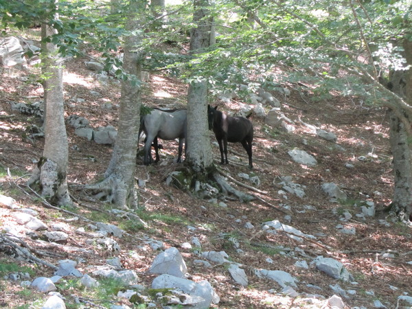 Incontriamo dei cavalli. Luna e’ molto curiosa e fa per avvicinarli, mi affretto a richiamarla.