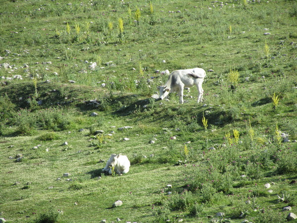 Per il ritorno non ho cose particolari da raccontare tranne per l’incontro ravvicinato tra Maria ed un serpente non meglio identificato, ma la cosa si e’ risolta con un po’ di spavento da parte di entrambi ed una fuga precipitosa del serpente! Arrivati alle macchine troviamo un mucchio di mucche alla abbeverata. Hanno letteralmente cosparso il piazzale di profumatissime deiezioni. Mi dolgo nel notare che alcune sembra soffrano anche di diarrea! Luna e’ interessatissima alle mucche ma per fortuna non si avvicina piu’ di tanto.