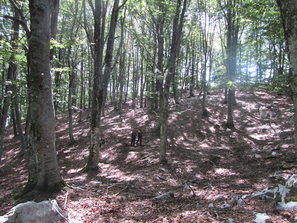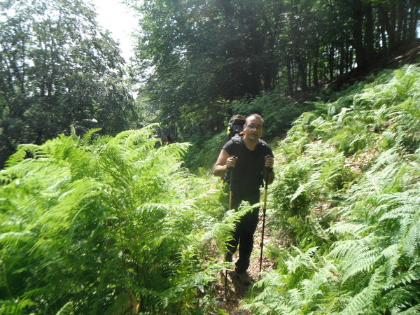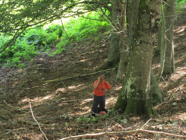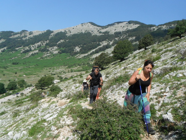 Facciamo una sosta approfittando dell’ombra offerta dal terzo albero e poi proseguiamo sotto il sole inclemente fino allo scavallo. Altra sosta e poi via. Arriviamo alla piana delle felci