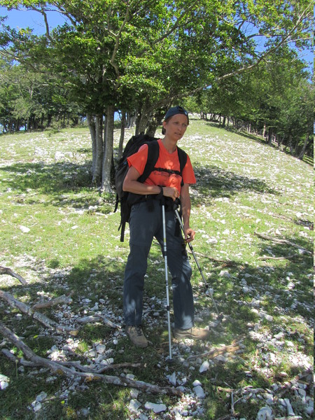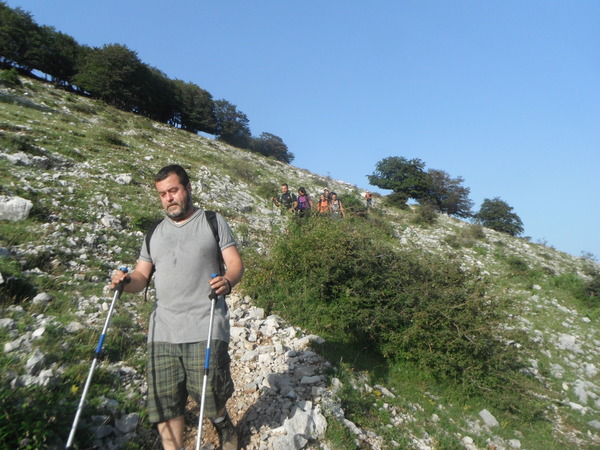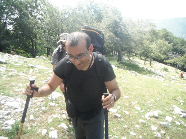 Non sono l’ultimo questa volta, ma c’e’ il trucco, mi ero preparato lo zaino prima, al parcheggio del bar “fico”. Il sole scotta ma l’aria non e’ rovente e si sale abbastanza bene.