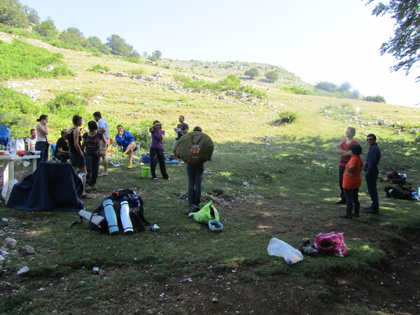 Sabato 27 Luglio 2013 – Solito appuntamento alle 8.00 al bar “fico”. Arrivano Netta, Lucilla, Fabio, Veruska, Fabrizio. Cristina, Stefano. Roberto ci raggiungera’ direttamente a Supino. Dobbiamo prendere ben 4 macchine perche’ sono tutte cariche di materiali da grotta a da campeggio. Fabio mi fa compagnia in macchina. Partiamo. Il tragitto e’ il solito, autostrada, uscita a Ferentino. Breve sosta per ricompattarci, sosta a Supino per le compere di cibarie ed un cappuccino “artistico”.