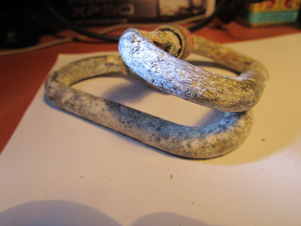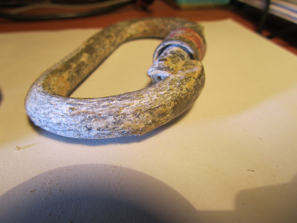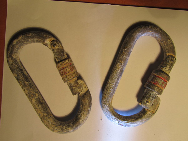 La giornata grigia e piovosa e’ stata rallegrata da un interessante seppur breve intervallo speleo, mi sembra bene! Per competare la condivisione dell’esperienza mi manca solo di mostrarvi i moschettoni che abbiamo sostituito. Ho scattato loro delle foto “postume”, a casa, dopo averli ripuliti un po’.