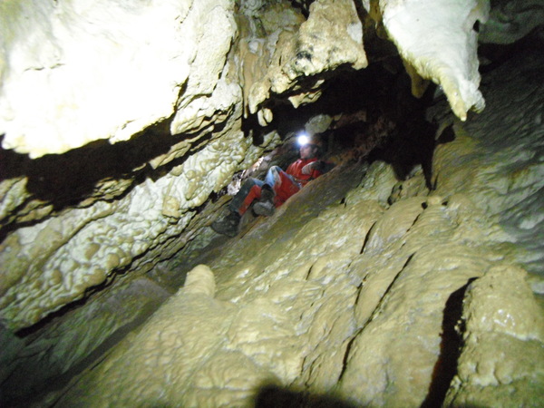 Cerco di andare oltre la strettoia ma non ci passo, provo tre volte senza riuscire, si dovra’ tornare con mezzi adeguati. Proseguendo la discesa passa avanti il buon Giulio.