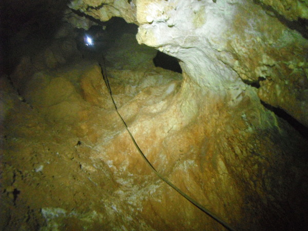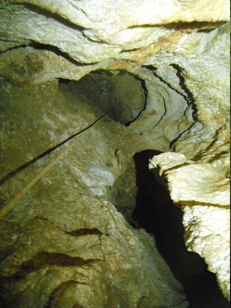 Iniziamo a scendere la serie di pozzi. Volendo filmarli, li conto, sono ben una dozzina! Solo un paio sono separati da un breve scivolo fangoso.
