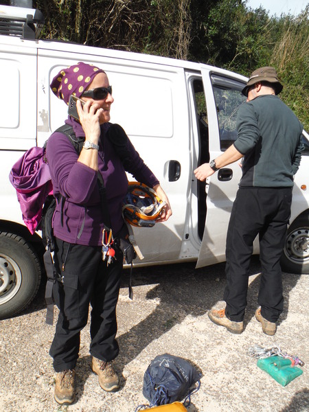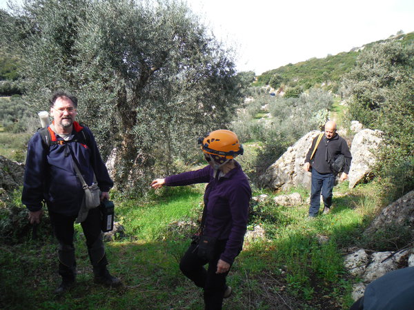 Mentre lui si prepara sistemo l’armo. Partiamo dall’armo naturale trovato da Stefano proprio all’ingresso e poi metto un fix in corrispondenza del pozzo. Mentre armeggio con il trapano i miei amici fronteggiano l’arrivo di un trafelatissimo signore. E’ il padrone del terreno dove siamo. Paola, Maria, Gianni e Pintus si adoprano a spiegargli cosa stiamo facendo, sembra tranquillizzarsi e dopo un po’ ci lascia con tanti saluti ed il suo permesso a continuare. Nel frattempo Stefano finisce di prepararsi ed entra ad esplorare il pozzo, porta anche la trousse da rilievo cosi’ se sara’ il caso prendera’ i dati uscendo. La speranza e’ che non ci sia il tempo per fare il rilievo ma e’ una speranza lievissima vista la mancanza di aria ed il fondo fangoso. Lascio la mia fotocamera all’esploratore cosi’ potra’ documentare adeguatamente la grotta. Eccolo che scende, Pintus gli fa da assistente. Per ingannare l’attesa inizio ad assaggiare uno dei panini, buono! Lo divoro. Ci penso un po’ su valutando i pro ed i contro poi decido, prendo il toro per le corna, mi mangio anche il secondo panino con molta soddisfazione. Paola mi guarda un po’ stupita, “Non e’ nemmeno mezzogiorno!”, mi dice. Accenno una battuta circa il fatto che col cibo sono piu’ cicala che formica ma non la convinco piu’ di tanto. Aspettando aspettando troviamo chiare tracce che la natura gia’ sente la primavera!