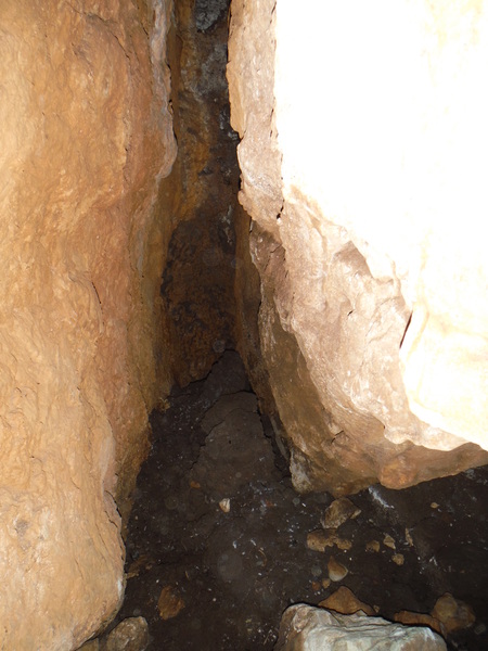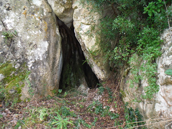 Ne saliamo una mezza dozzina quando eccoci arrivati all’ingresso della grotta! Poso lo zaino e vado a farmene una idea. E’ una spaccatura triangolare alta circa 1,5 metri e larga alla base circa 1 metro.