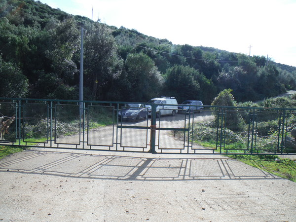 Rapido consulto e decidiamo che non vale la pena impiegare altro tempo in questa impresa. Stefano inizia a fare il rilievo mentre noi ci godiamo il sole e facciamo giri nei dintorni. L’unico risultato dei miei giri e’ che scostando un ramo reciso, la mia mano rimane impigliata e piu’ volte trafitta dalle decine di spine che l’infido vegetale secco nascondeva. Passo un minuto buono a togliere aculei dalla mano destra. Concludo il giro senza ulteriori incidenti e senza scoperte interessanti. Stefano fa capolino. Disarma l’armo sul pozzo. Quando finisce lo aiutiamo a rifare il materiale. Ricomponiamo gli zaini e partiamo per tornare alle macchine. Quando Gianni ha capito che la grotta non ci avrebbe regalato grandi sorprese ha chiamato Antonella. Antonella e’ una simpatica ragazza del posto che si e’ gentilmente offerta di aiutarci a cercare nuove grotte nei dintorni. Io non la conosco ancora ma i miei amici gia’ sono andati con lei in cerca di grotte nelle settimane scorse. Arrivati alle macchine, loro, i crapuloni, si mettono a mangiare. Io resto sconsolato a guardare!!! Sono ancora intenti al gozzoviglio quando arriva Antonella. Questo decreta la fine del pasto. Dopo le presentazioni ed i saluti vediamo il da farsi. Antonella ha delle segnalazioni fattele da 2 diversi anziani del posto. Il fatto che 2 fonti diverse concordino sulla esistenza di una grotta sembra promettere bene. Andiamo a tentare la sorte nella zona indicata. Antonella ci guida e noi la seguiamo. Anche in questo caso non chiedetemi la strada perche’ non ne ho la piu’ pallida idea. Posso dire solo che posteggiamo vicino ad un cancello in ferro lunghissimo che sembra proteggere l’ingresso ad una cava abbandonata.
