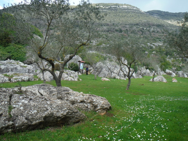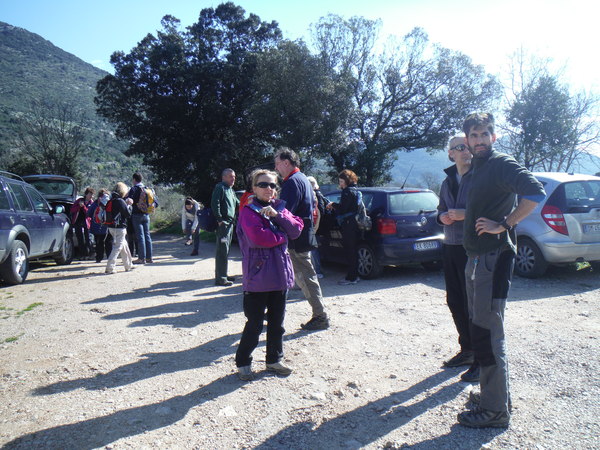 Gianni nel frattempo ha messo tutti al corrente del cambio di programma. Dovevamo andare a vedere dei buchi nuovi insieme ad amici del gruppo Grotte Castelli Romani e la nostra guida “sonniniana” ma poi si sono fatte 2 squadre, gli amici del GGCR andranno a prendere i punti dei nuovi buchi, la nostra andra’ a rivedere delle grotticelle nei dintorni di Campo Soriano esplorate nei lontani anni ’80 (eh si, quasi senza che me ne accorgessi, gli anni ’80, quelli della maturita’ e di tante altre cose belle e brutte, hanno imboccato la buona strada per mutarsi in storia…meglio chiudere subito questo inciso!). Al parcheggio troviamo affollamento, c’e’ un allegro gruppo di escursionisti che faranno un giro da queste parti.