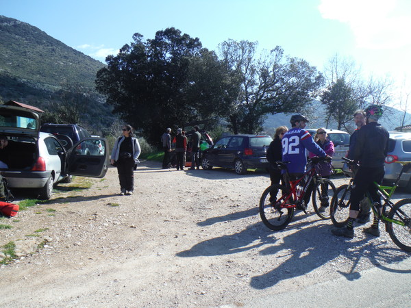 Mentre ci prepariamo si avvicinano anche dei cicloescursionisti del posto e Gianni attacca bottone chiedendo loro di buchi e grotte nei dintorni.