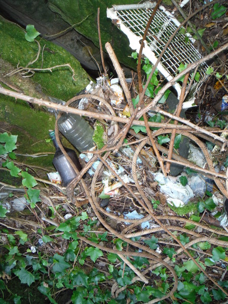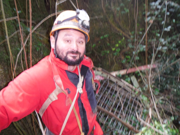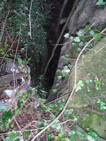 Lo tralasciamo perche’ chissa’ chi, chissa’ quando, ha bordato la dolina con enormi massi sistemati a tenuta della terra intorno. Questi massi non danno alcun senso di stabilita’ a vederli quindi decidiamo che non andremo a disturbarli. Il secondo buco/grotta e’ a destra, tra il parcheggio e la recinzione di una villetta. Sembra una innocua spaccatura seminascosta dalla vegetazione, ma basta avanzare di un metro per accorgersi che si tratta di una bellissima e pittoresca discarica di cose puzzolenti. Tra Luisa e Stefano e Ivano ed io ci disputiamo l’onore di scendere e rilevare il buco maleodorante. Probabilmente Luisa e Stefano cedono le armi dopo aver assaporato i teneri effluvi che emanano dal buco. Ivano ed io, decisi e compatti ci avviamo alla riscoperta della discarica. Mentre finisco di prepararmi appioppo a Ivano le forbici per fare un po di pulizia dove scenderemo. Quando sono pronto mi avvicino al buco, un tizio dalla strada mi urla che li’ dentro non si puo’ scendere, gli borbotto di rimando qualcosa di rassicurante e poi vado, metto la corda e scendo.