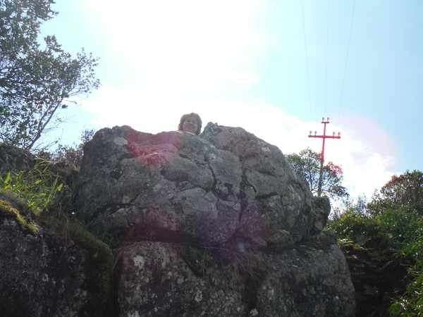 Non sembra esserci alcunche’ di notevole da vedere li’ nelle vicinanze. Gianni ci dice che c’e’ un posto sulla collina di fronte indicatogli dai cicloescursionisti questa mattina, pero’ e’ distante ed e’ meglio andare leggeri. Visto che anche per il resto della banda si e’ fatta ora di pranzo, il piano d’azione e’ presto delineato. Torneremo alla macchina per la pappa e per cambiarci e poi andremo a fare ricognizione sulla collina. Gianni ci indica, in direzione del pinnacolo di roccia chiamato “il carciofo” attacca la collina. Piu’ in alto si trovano 3 o 4 villette allineate alla stessa quota. Secondo le indicazioni, vicino alla piu’ grande di queste villette ci dovrebbe essere una grotta. Strada facendo, tra frizzi, lazzi ed un Ersimio versione rasta, discutiamo su quale sia la villa piu’ grande. Non e’ proprio immediato deciderlo. Rimandiamo la cosa a quando saremo piu’ vicini. Sbrighiamo il pasto, o meglio, lo sbrigano loro mentre io, gia’ sfamato, me li guardo sgranocchiare con malcelata golosita’.