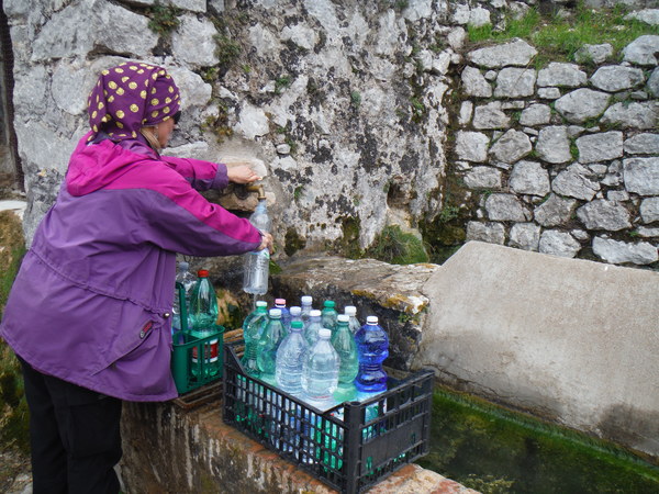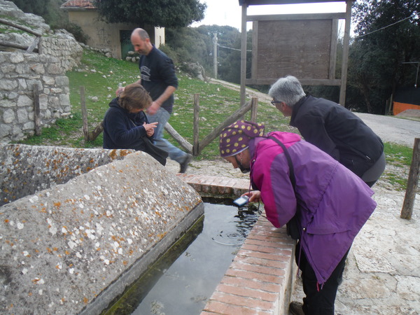 Visto che e’ ancora presto decidiamo di andare a visitare un altopiano nelle vicinanze che potrebbe essere speleologicamente interessante. Mi perdo subito quindi non saprei dire come ci siamo arrivati, pero’ arriviamo in un punto dove abbiamo una rusticissima pizzeria sulla destra ed una fonte d’acqua sulla sinistra. Ci sono delle persone intente a prendere l’acqua. Ci fermiamo e Gianni prende subito parola con loro chiedendo di buchi, grotte, o altro. Uno di questi e’ addirittura nato pochi metri piu’ in la’, parlano a lungo. Ad ogni modo il posto sembra interessante anche a me. Attorno allla fonte ci sono delle vasche. Dentro ci sono dei simpatici animaletti. I piu’ informati del gruppo dicono trattarsi di tritoni.