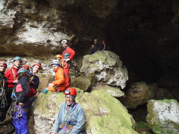 foto di gruppo all’arrivo alla fine della traversata della grotta