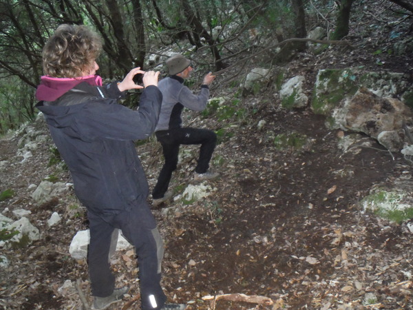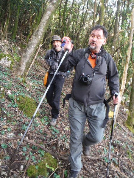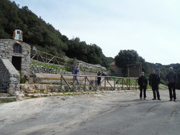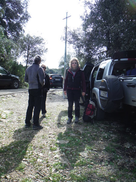 Qualche minuto dedicato ai saluti e poi ci spostiamo in zona grotte. Parcheggiamo in uno spiazzo, Gianni ci preannuncia un durissimo avvicinamento di almeno 50 metri!