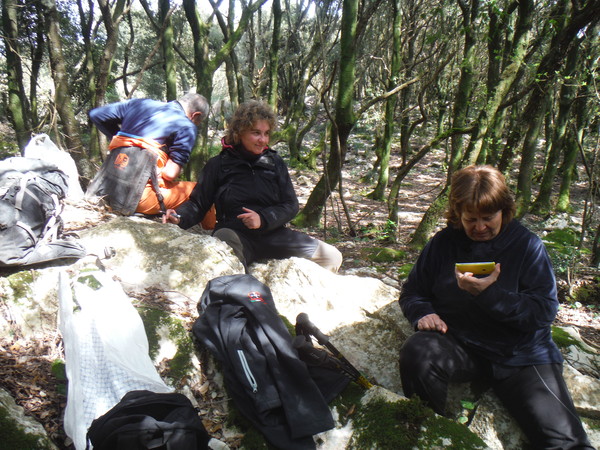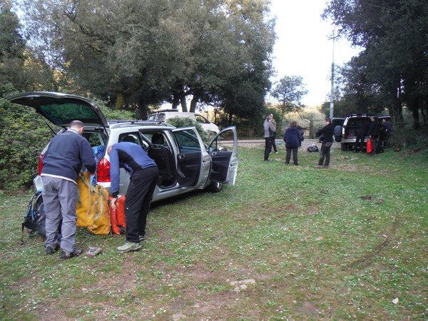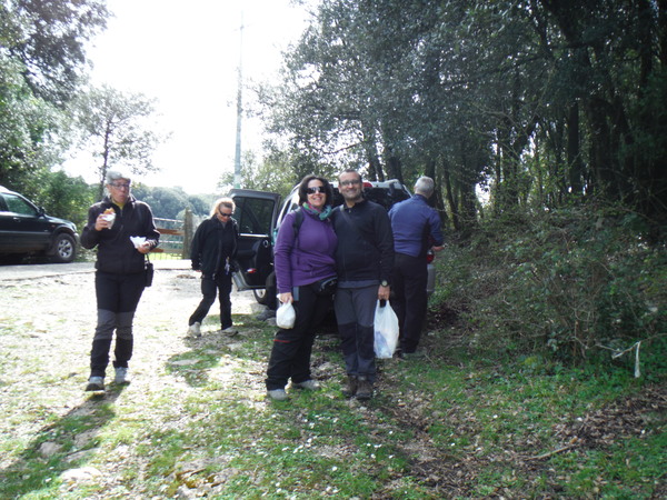 Ho appuntamento con Maurizio sotto casa. Oggi sara’ lui a scarrozzarci. Dopo, insieme, passeremo da Maria e Gianni. Arriviamo sotto casa loro in perfetto orario. Gli facciamo uno squillo e poi ci disponiamo all’attesa godendoci la quiete delle prime ore della giornata festiva. Scendono carichi di zaini come al solito ma il capiente bagagliaio della macchina di Maurizio accoglie tutto senza scomporsi minimamente. Dovremmo essere solo noi quindi salta l’appuntamento al bar fico dell’ikea sulla anagnina. Sulla scorta di questa riflessione ci fermiamo quasi subito ad un bar per la colazione. Mentre degustiamo il primo pasto della giornata arriva un aggiornamento. C’e’ Marco che aspetta al bar fico, bisogna passarci. Per fortuna ancora non c’e’ molto traffico e impieghiamo poco. Quando arriviamo al bar fico scendo solo per salutare Marco ed altri amici del Cai che stanno andando dalle parti di Carpineto. Evito di entrare nel bar per non cadere in tentazione, gia’ so che cederei senza lottare! Marco carica il suo bagaglio e partiamo alla volta di Sonnino. L’ultimo appuntamento e’ con tutto il resto del gruppo direttamente alla piana di Santo Stefano, al parcheggio della fonte. Sul posto troviamo gli astici, pochi minuti e arrivano anche gli altri con la macchina di Max.