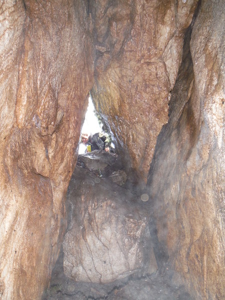 Visto che sono l’unico che ha indossato la tuta devo rassegnarmi a sporcarla e vado dentro a darci una occhiata. Chiudono entrambi dopo pochi metri. Continuiamo a vagare ma sono un po’ stufo, voglio andare alla seconda grotta da esplorare. Inizio a martoriare Gianni chiedendogli di portarmici. Insisto, insisto e poi ancora insisto. Quando trovo in Stefano un alleato Gianni finalmente cede. Per andarci intanto si deve tornare verso le macchine.