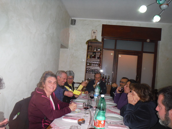 Inzeppiamo la macchina di Maurizio, riformiamo l’equipaggio e poi via. Arriviamo al ristorante in orario perfetto e ci dedichiamo con impegno a soddisfare il nostro appetito con energia ed allegria.