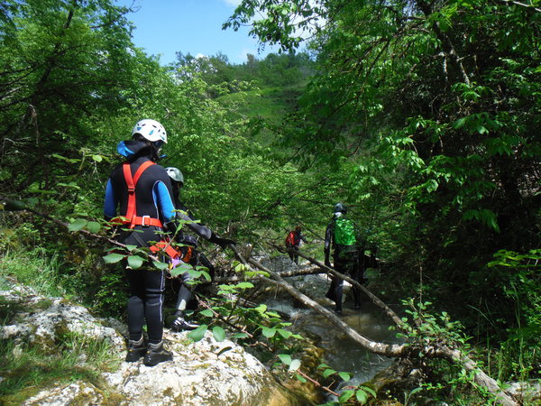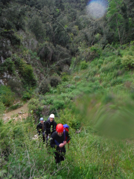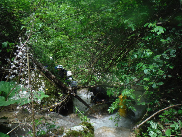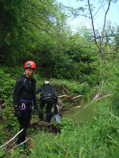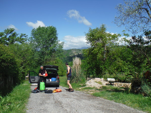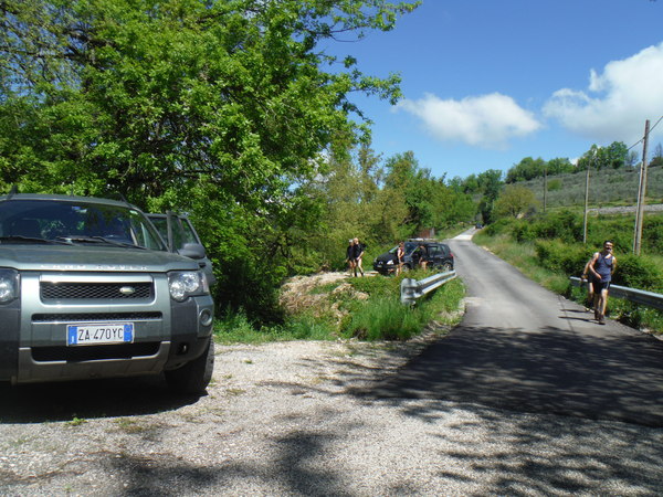 Ci compattiamo armi e bagagli in 3 macchine, Marco viene in macchina con noi, gli altri si stipano nelle macchine di Stefano e Fabrizio. Il viaggio e’ lunghetto ma tra una chiacchiera ed un pisolo mi ritrovo a quello che pensiamo essere il punto di uscita dalla forra.