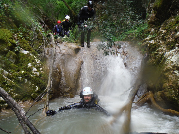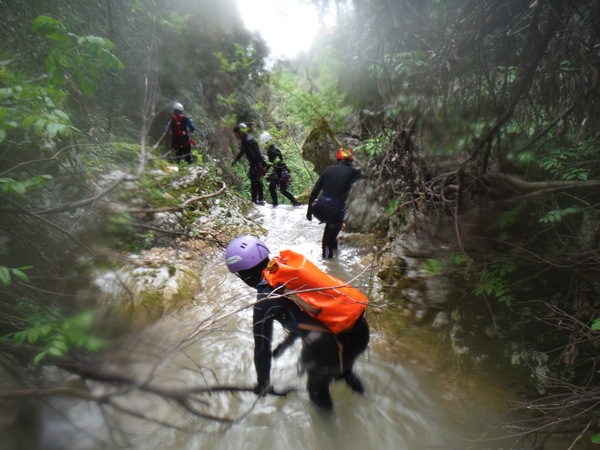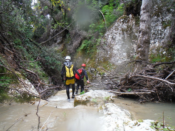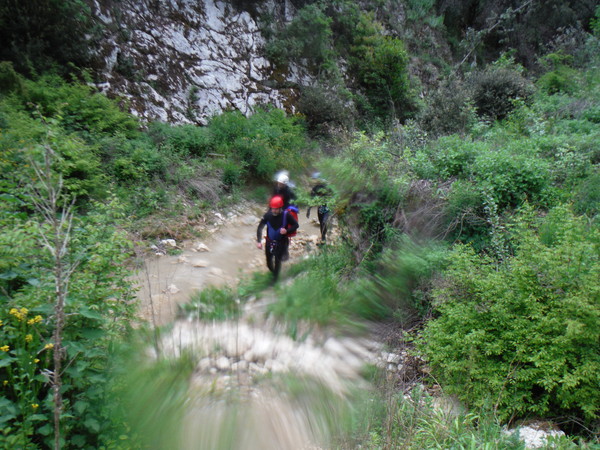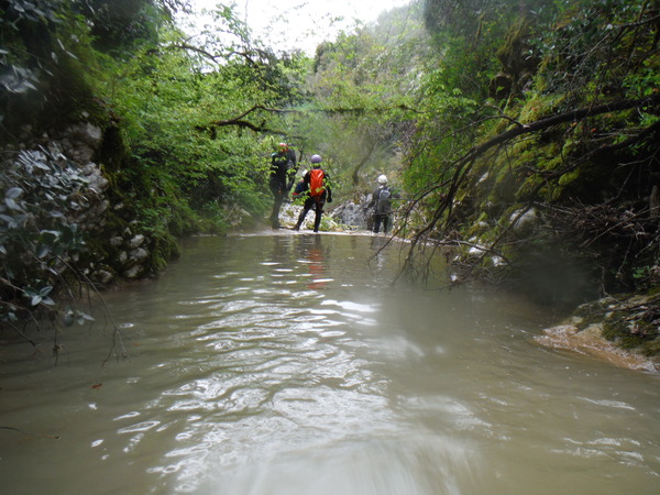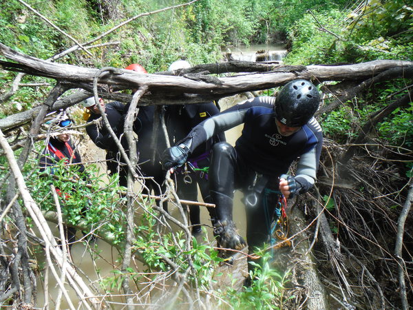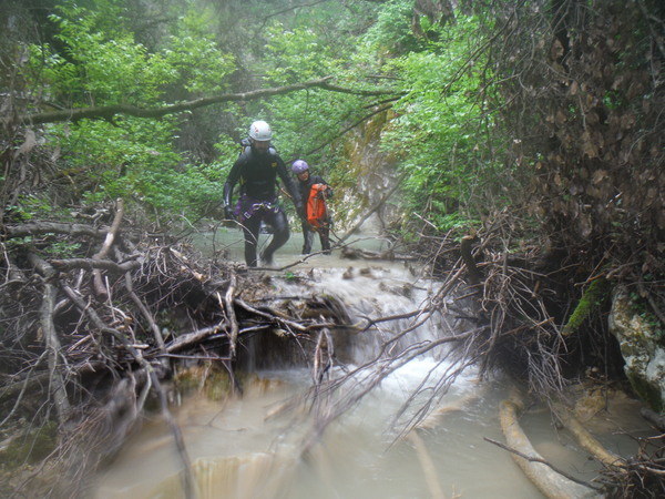 La forra e’ divertente anche se a tratti invasa da folta vegetazione e da tronchi di alberi crollati che impacciano un poco la progressione. L’acqua non e’ propriamente limpida ed ogni tanto si sentono odori poco simpatici ma tutto sommato nulla di eclatante. Eravamo in 10 e l’abbiamo percorsa in circa 6 ore senza particolare fretta, abbiamo impiegato quasi piu’ tempo a cercare i punti di arrivo e partenza.