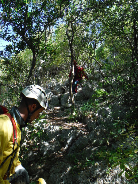 Eccoci tutti in fila per il sentiero
