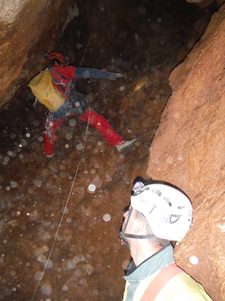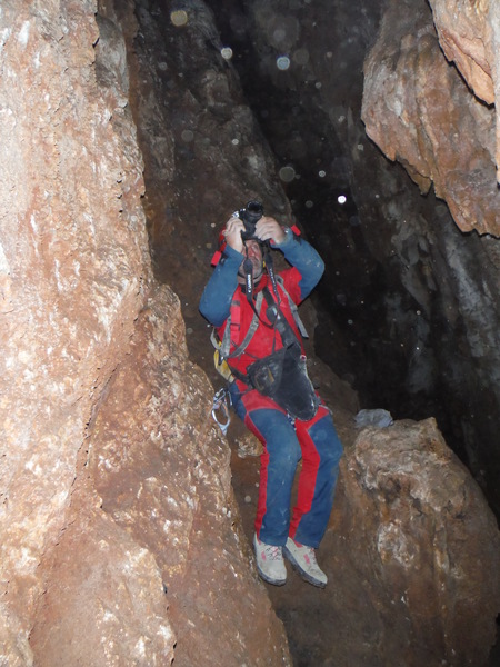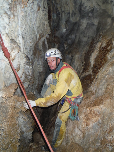 Una tranquilla passeggiata fino ad uno dei fondi della grotta. Dico uno dei fondi perche’ ci sono molte diramazioni e sono 3 giorni che cerco di capire dove siamo stati guardando il rilievo ma, ad essere sinceri, non sono riuscito a cavare un ragno dal buco!!! Erano anni che non proseguivo oltre i primi pozzi che si fanno normalmente accompagnando i novelli speleo durante il corso. Non ricordavo proprio che dopo quel punto inizia veramente la grotta e quanto e’ interessante.